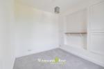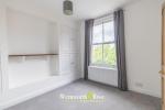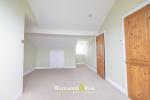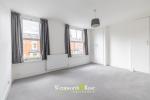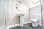 Upstairs, the first floor hosts two well-proportioned double bedrooms, including a particularly spacious principal bedroom across the front of the property. A modern family bathroom is positioned centrally on this level and is finished in white tiling with shower over bath. On the top floor, a further large double bedroom enjoys the benefit of its own en-suite shower room, a skylight, and extensive built-in eaves storage.