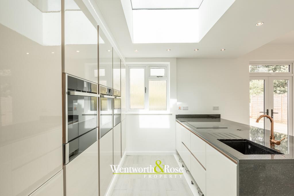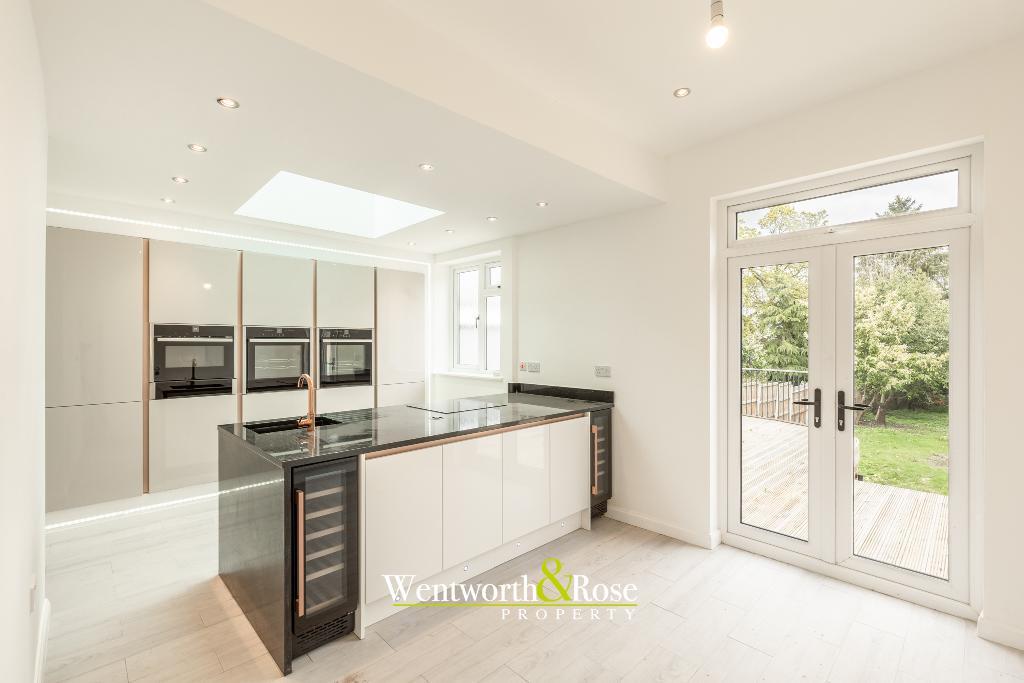 To the rear sits a wonderful, high specification kitchen / diner which offers ample surface and storage space and high quality integrated appliances. There is access out onto the garden through French doors and a roof lantern making this a lovely bright space which is perfect for family life and entertaining.