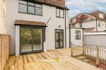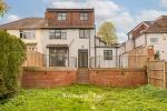 Heading outside the rear garden offers a large, private space to enjoy during the summer months. It is surrounded by mature borders and offers plenty of scope for different configurations. There is also a large decked area to the rear.