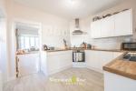 The ground floor layout is both practical and well considered. A generous front living room features a bay window with fitted seating, original floorboards, and an attractive fireplace with tiled surround, creating a warm and welcoming space. This leads through to a bright and modern kitchen with clean white cabinetry, wood-effect worktops and integrated appliances, all arranged around a sociable layout. To the rear, the dining room extension offers a light-filled setting with a vaulted ceiling, skylights and bi-fold doors opening onto the garden, an ideal space for entertaining or family dining. A separate utility area adds further functionality while keeping the main living spaces free from clutter.