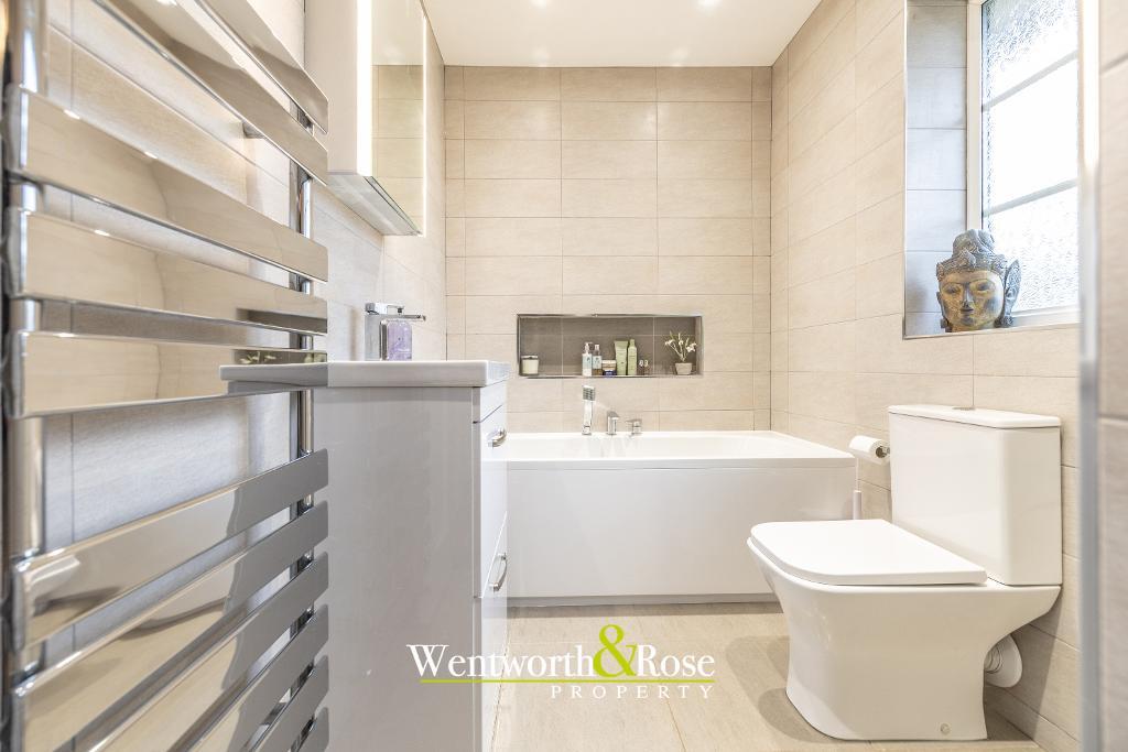 Upstairs, three comfortable bedrooms are served by the beautifully upgraded bathroom, creating a calm and cohesive first-floor layout that works equally well for families, professionals or those looking to grow into a home over time.
