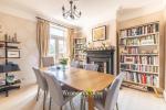 Spread across three floors, the property provides ample living space, highlighted by high ceilings that enhance the sense of openness and light. The two reception rooms on the ground floor are each equipped with active gas fireplaces, adding warmth and a cozy atmosphere, while the other fireplaces throughout the home serve as charming decorative features.