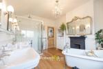Stunning stained glass features throughout the home add a touch of artistic elegance, reflecting the property"s unique heritage and architectural value. The family bathroom on this floor provides a spa-like experience with classic fixtures and fittings.