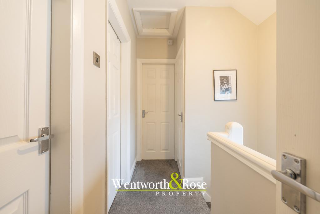 The first floor is serviced by a family bathroom, designed to accommodate everyday needs, along with a separate WC that adds convenience for busy households. Additional storage is thoughtfully incorporated with cupboards located off the landing, ensuring there is sufficient space to keep belongings neatly organised.