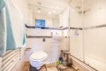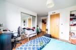 The master bedroom serves as a serene retreat, spacious and flooded with natural light, equipped with substantial wardrobe space featuring elegant sliding mirror doors that not only offer ample storage but also enhance the room's airy feel. The sophisticated main bathroom is thoughtfully designed, featuring a contemporary shower-over-bath setup enclosed by a clean-lined glass screen and complemented by an expansive mirror, extending across the wall to create a sense of enlarged space.