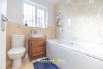 Upstairs, the accommodation comprises two well-proportioned double bedrooms and a third good-sized single bedroom, all presented to a high standard. The modern family bathroom is fitted with a bath and overhead shower, WC and wash basin set within a stylish vanity unit.