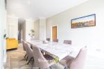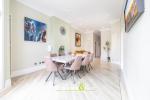 The apartment is principally arranged across one impressive open-plan floor, with a welcoming hallway leading to a well-designed kitchen and dining area, a separate living room offering an elegant reception space, a study providing flexibility for those working from home or requiring an additional room, and two spacious bedrooms, both with en-suites. Large windows enhance the feeling of light and space, creating a bright and inviting atmosphere.
