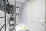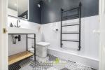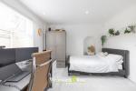 The lower ground floor offers two well-proportioned double bedrooms. The principal bedroom features a full wall of fitted wardrobes and a convenient en-suite WC, while the second bedroom provides excellent versatility as a guest room or workspace. A stylish main bathroom includes a walk-in rainfall shower, heated towel rail, basin and WC. The apartment also benefits from a NEST Wi-Fi thermostat, Yale alarm system, blinds and curtains throughout, and a useful storage room off the hallway.
