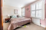 Upstairs, the property offers three well-proportioned bedrooms. The generous master bedroom to the front features twin windows with shutters and a period fireplace, adding to the charm and light-filled feel of the space. The second and third bedrooms are also well-sized, offering flexibility to accommodate individual needs, whether used as bedrooms, a home office, or a dressing room. The beautifully appointed family bathroom has been recently updated and is finished to a high standard with a contemporary suite, quality fittings, and a sleek neutral décor.