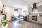Upstairs, the spacious one-bedroom flat offers well-proportioned living accommodation. The open-plan kitchen and living area features modern units, sleek worktops, and integrated appliances, providing a comfortable and practical space for day-to-day living. A generous double bedroom is positioned to the rear, creating a private retreat, while the bathroom is finished to a high standard with a bath, shower over, and contemporary fittings.