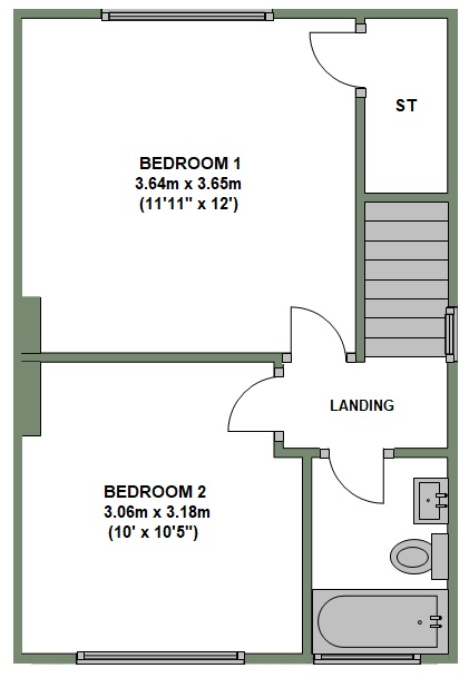 Upstairs, the property offers two well-proportioned double bedrooms, each with excellent natural light and attractive green outlooks. The bathroom has been finished to a high standard and includes a shower over the bath.