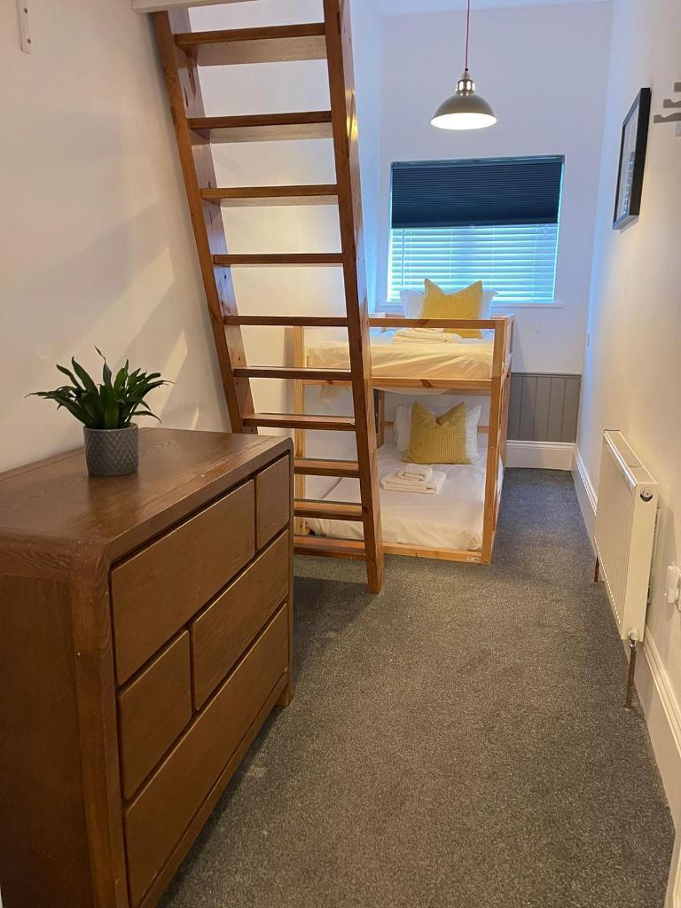 The apartment boasts three bedrooms, including two impressive and generously proportioned double bedrooms, ideal for rest and relaxation. A third versatile bedroom features innovative up-and-down sleeping arrangements, making it perfectly suited for children, guests, or use as a flexible home office space.