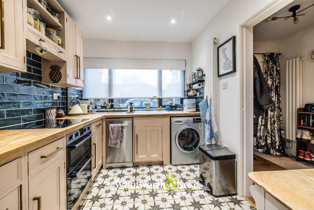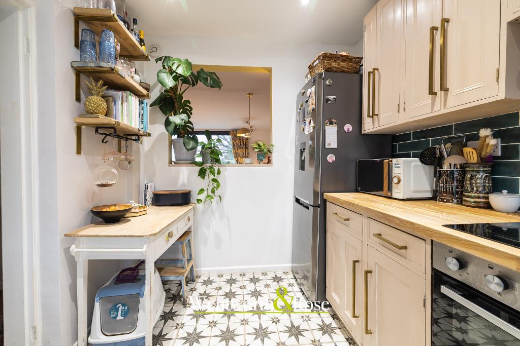 Upon entry, a welcoming porch leads into a refined hallway, providing access to the thoughtfully designed kitchen. The hallway also opens into a stunning, light-filled reception room, where patio doors seamlessly connect the interior to the exceptional rear garden; a true highlight of the home. The garden is rich in character, featuring two distinct patio areas ideal for entertaining, along with a substantial and enchanting "secret" garden that offers a peaceful retreat.