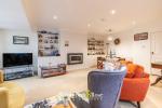 The entrance floor is both welcoming and practical. A generous hallway provides useful storage and leads through to a spacious open-plan living and dining room, measuring over 22 feet in length. This impressive space is ideal for both everyday living and entertaining, with large windows drawing in natural light and providing a pleasant outlook. To the rear, the living area opens into a conservatory, offering an additional reception space that works perfectly as a garden room, dining area or relaxed sitting space.