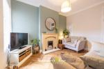 To the rear, the recently fitted and cleverly thought-out kitchen offers ample cupboard storage and work surface space, with a practical layout designed for day-to-day convenience. There is direct access through to the ground floor bathroom, which is neatly arranged and serves the household efficiently. A useful store area on the ground floor further adds to the practicality of the home, providing valuable space for household items and additional storage.