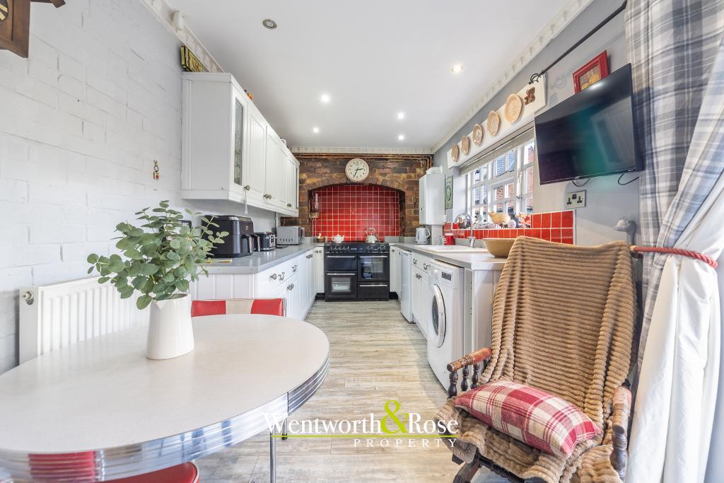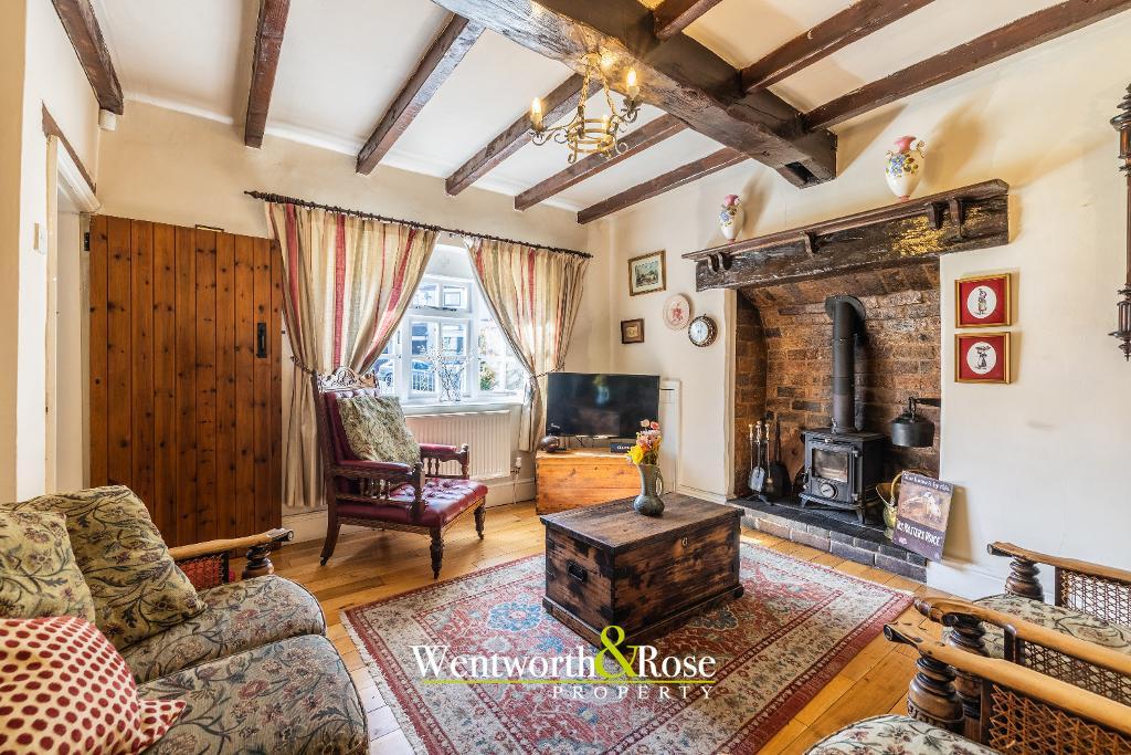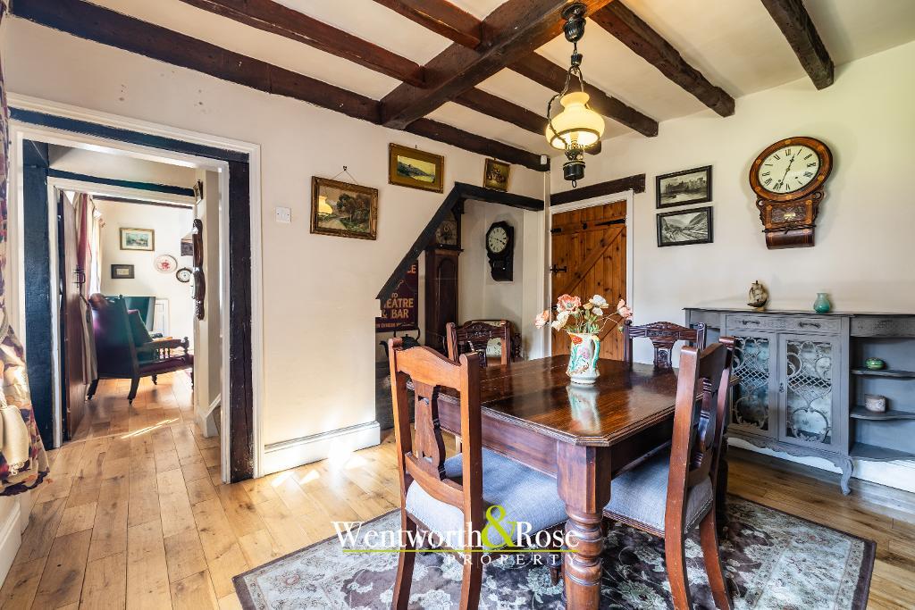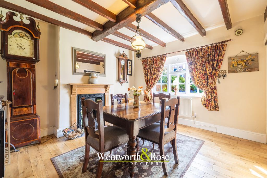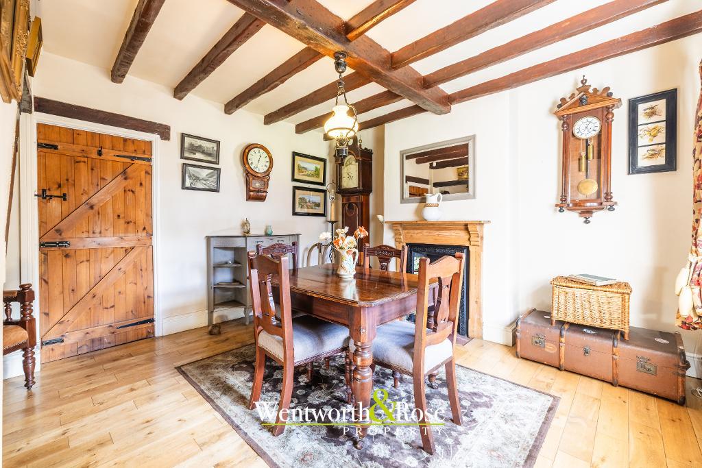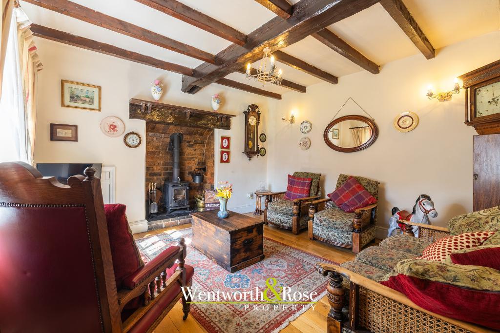 The living room is positioned to the front of the property and offers a comfortable and cosy setting, ideal for everyday relaxation as well as entertaining guests. Its shape allows for a variety of furniture arrangements, creating a versatile living space that can easily adapt to different lifestyles. The home further benefits from two fires—a restored log burner and an open fire—with both chimneys in excellent working condition, adding warmth and character.